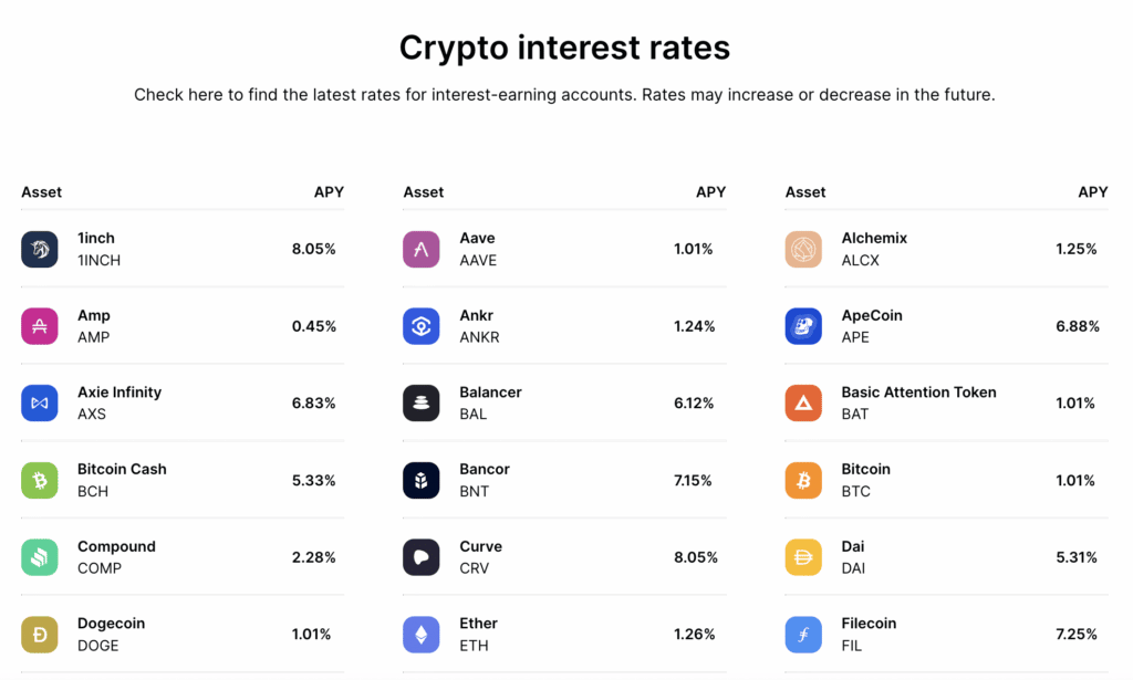 Instead of trading your crypto, you can also take advantage of the staking product offered called Gemini Earn. This allows you to earn yield on your crypto while you're waiting for the bull market to come roaring back. The rates aren't exactly spectacular though, I have to say: