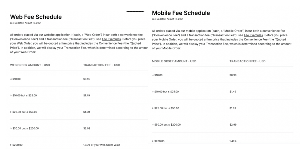A multitude of fees awaits you on Gemini. Unlike other exchanges, Gemini makes a distinction regarding which platform you use to make your trades. Each trade carries a Convenience fee and a Transaction fee. Each quoted price includes the former while the latter is a seperate line item based on the amount of the order. Fees are also quoted in the fiat currencies supported by Gemini.