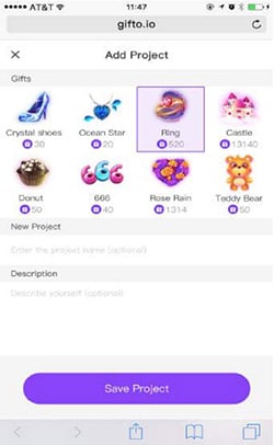 Gifto allows fans to reward content creators with virtual gifts (graphics and animations) that can be converted to Gifto Tokens or cash.