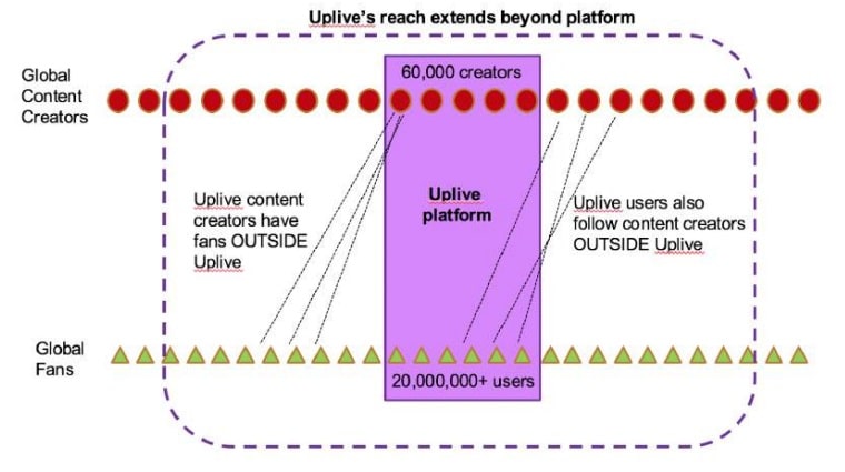 Uplive has already been generating millions of dollars of income for over 60,000 content creators every month. This constant income stream is generated directly from their dedicated viewer base in Asia, and now expanding globally.