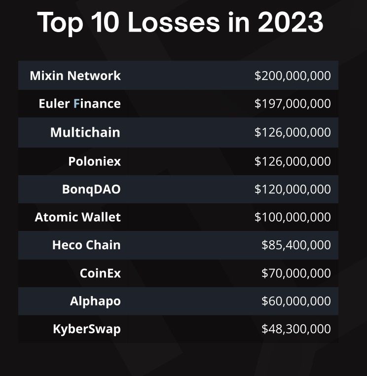 - CeFi suffered $408.9 million in total losses in 2023 across 13 incidents, declining 46.8% over 2022.