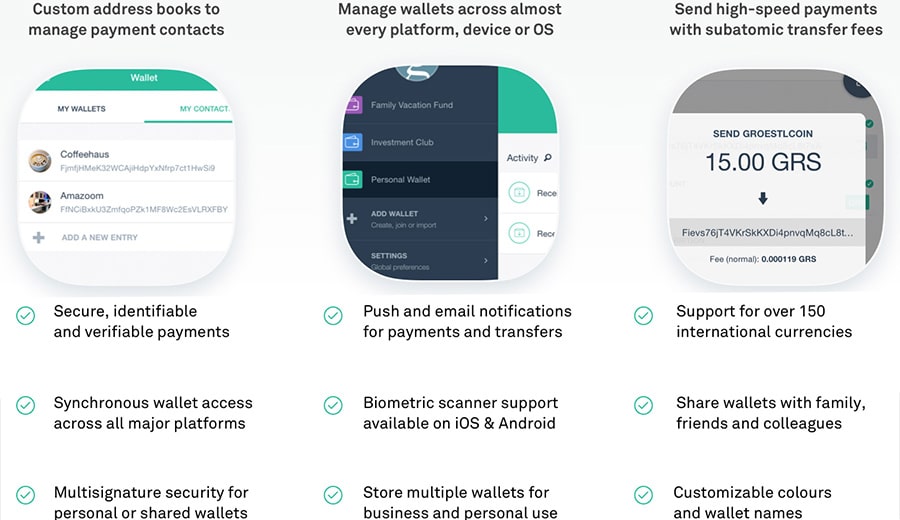 GroestlPay mobile wallet features and benefits. Image SourceAs mentioned earlier the Samourai wallet is a great place to store Groestlcoin, as is the GroestlPay wallet. One of the great things about Groestlcoin is you’ll find a wallet for nearly any platform you could want.