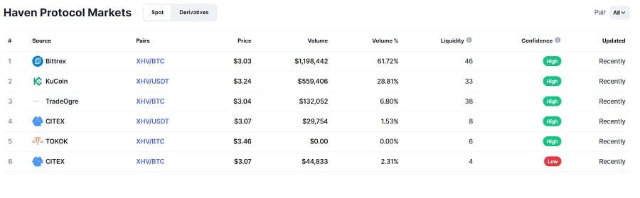 If you want to start your own offshore bank account with Haven Protocol, you are going to need some XHV. Unfortunately, your options are quite limited for the time being – its Bittrex or bust. The trading volume there is not the best but has been increasing in recent weeks.