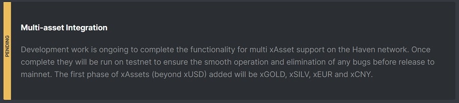 That said, you can mint other synthetic currencies such as xEUR or xGBP using xUSD. xAssets have not been implemented at the time of writing, and the first set of xAssets to be supported is detailed in the Roadmap section of this article. Oh and of course, all xAssets are completely private like XHV and xUSD.