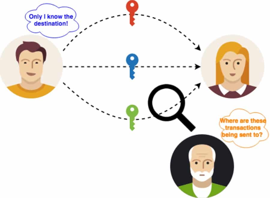 Image via Researchgate The first is Ring Signatures which hide the identity of the wallet sending a transaction. In a Ring Signature transaction, any wallet belonging to the same group of wallets can sign for that outgoing transaction. This makes it impossible to tell which wallet the transaction actually came from.