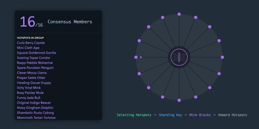 Hotspots are randomly elected to the Consensus Group to perform tasks including validating transactions and publishing new blocks to the blockchain. Group members receive a portion of the 6% distributed to the Consensus Group.