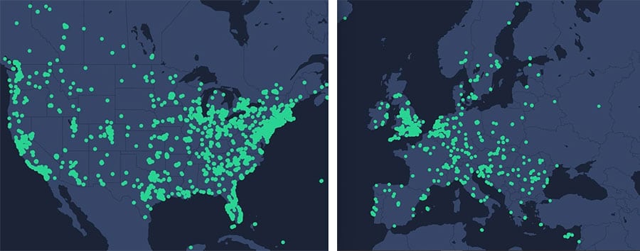 Coverage in the US & EU in April 2021 You’ll also find growing coverage in China and a few other Hotspots in Japan and across the rest of Asia. The number of Hotspots grew very rapidly across North America and Europe, so it will be interesting to revisit this map in 6 months time and see the growth in Asia as well.
