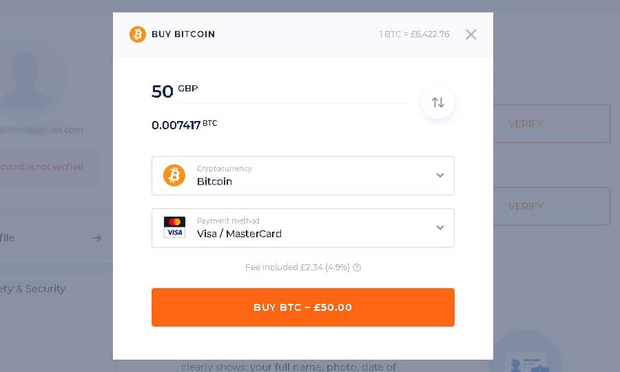 However, when you buy coins, you will be charged a 4.9% commission. We also confirmed this when we calculated the amount of Bitcoin that we received after our purchase. This is on the higher end of things but is still below Bitstamp's 5% commission.