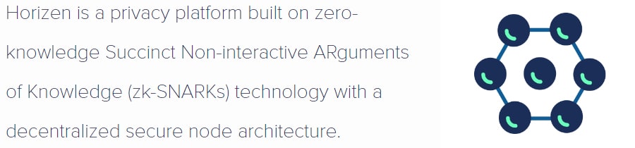 Horizen is a privacy focused blockchain that is a fork of ZClassic which was itself a fork of Zcash. As such it is one of the privacy coins that makes use of Zcash's ZK-snark technology. This highly advance privacy technology makes use of Zero Knowledge Proofs.