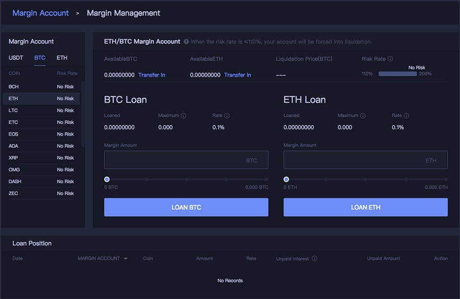 However, it is still a relatively attractive way for you to enhance your returns with borrowed money. Once you have taken out the loan, you will charged an interest on the outstanding position. The daily rate of loaning USDT is 0.1% and the daily rate of loaning BCH, ETH, LTC, ETC, DASH, XRP, EOS, OMG, ZEC is 0.02%.