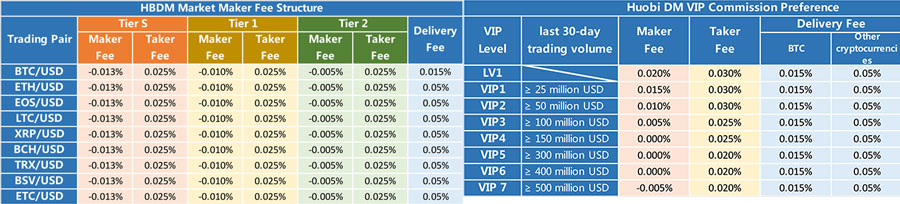 As is the case with the futures, Huobi has different fee tiers for those who are either VIPs or those who are providing significant liquidity to the exchange.