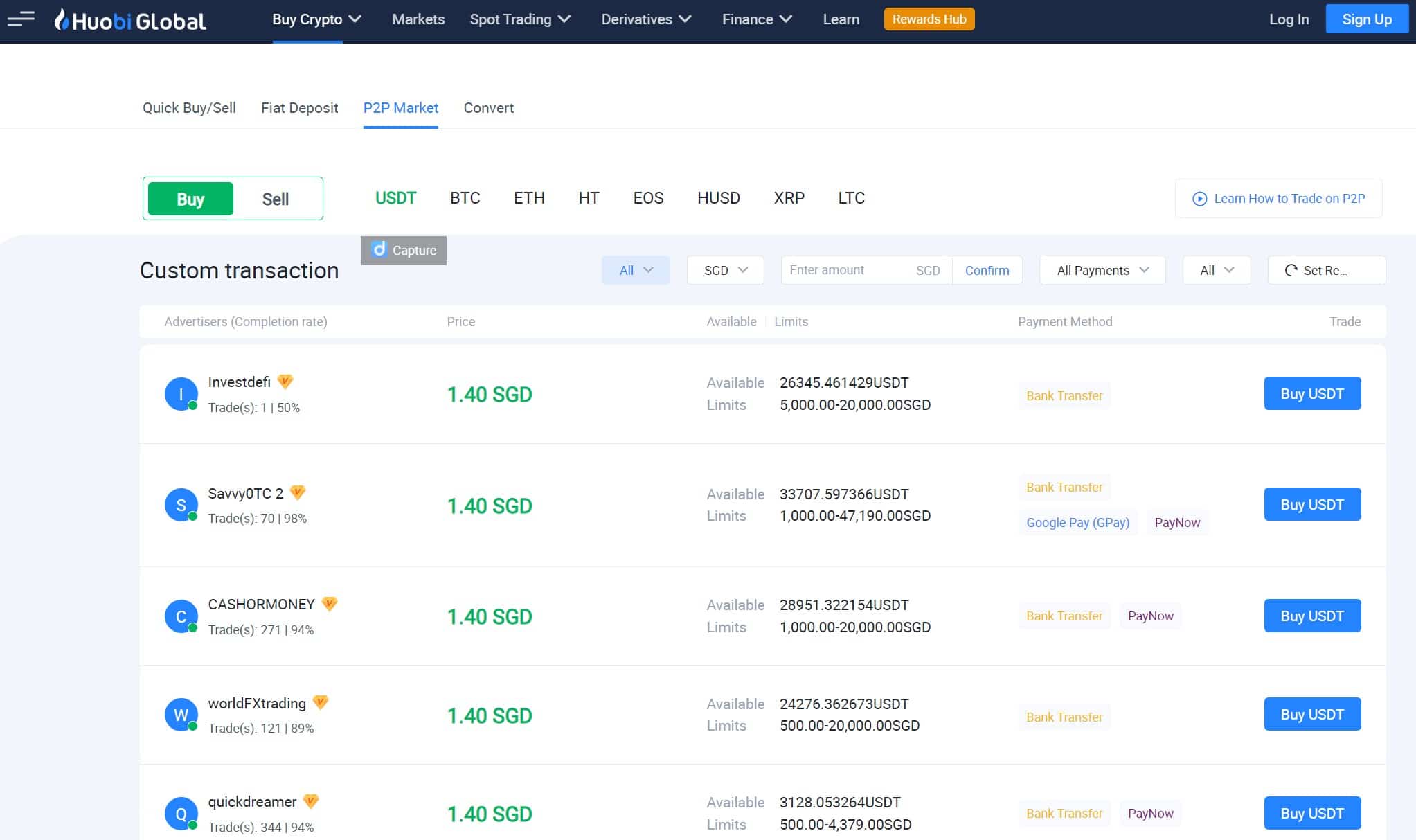 One of the most fee-friendly features on HTX is the peer-to-peer (p2p) marketplace where traders can convert fiat to crypto and vice versa for 0 fees.