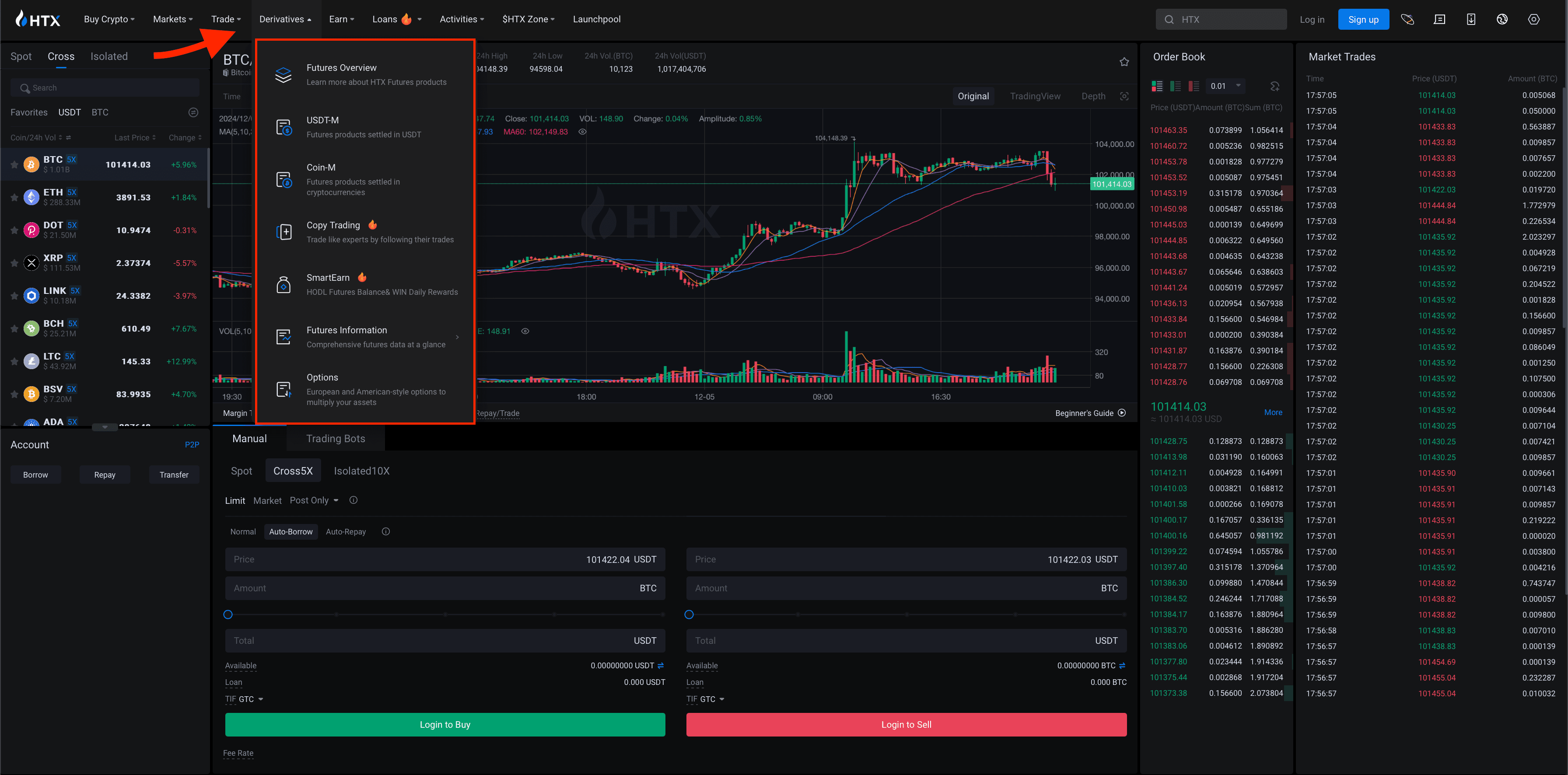 Accessing HTX Derivatives Products. Image via HTX.From there, traders will be able to access the powerful Futures trading interface.