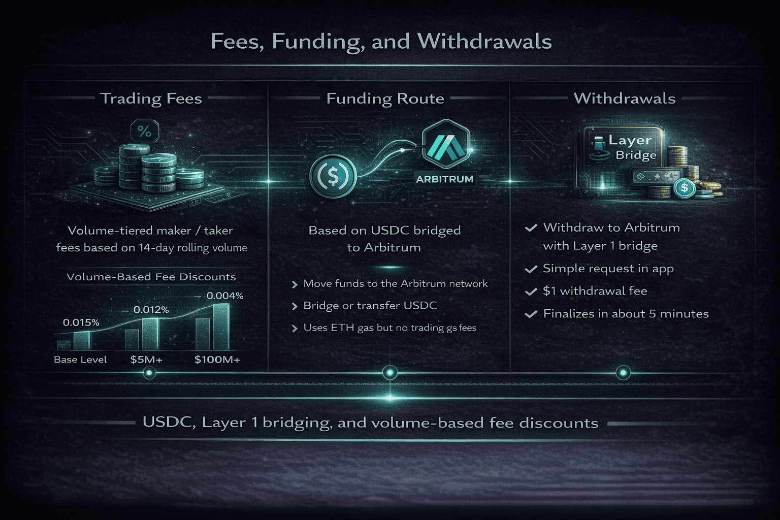 This is the less glamorous part of any review, but it is often the part that matters most in practice. Hyperliquid’s trading fees, deposit flow, and withdrawal process are fairly straightforward once you understand that the platform is built around USDC and its native bridge to Arbitrum.