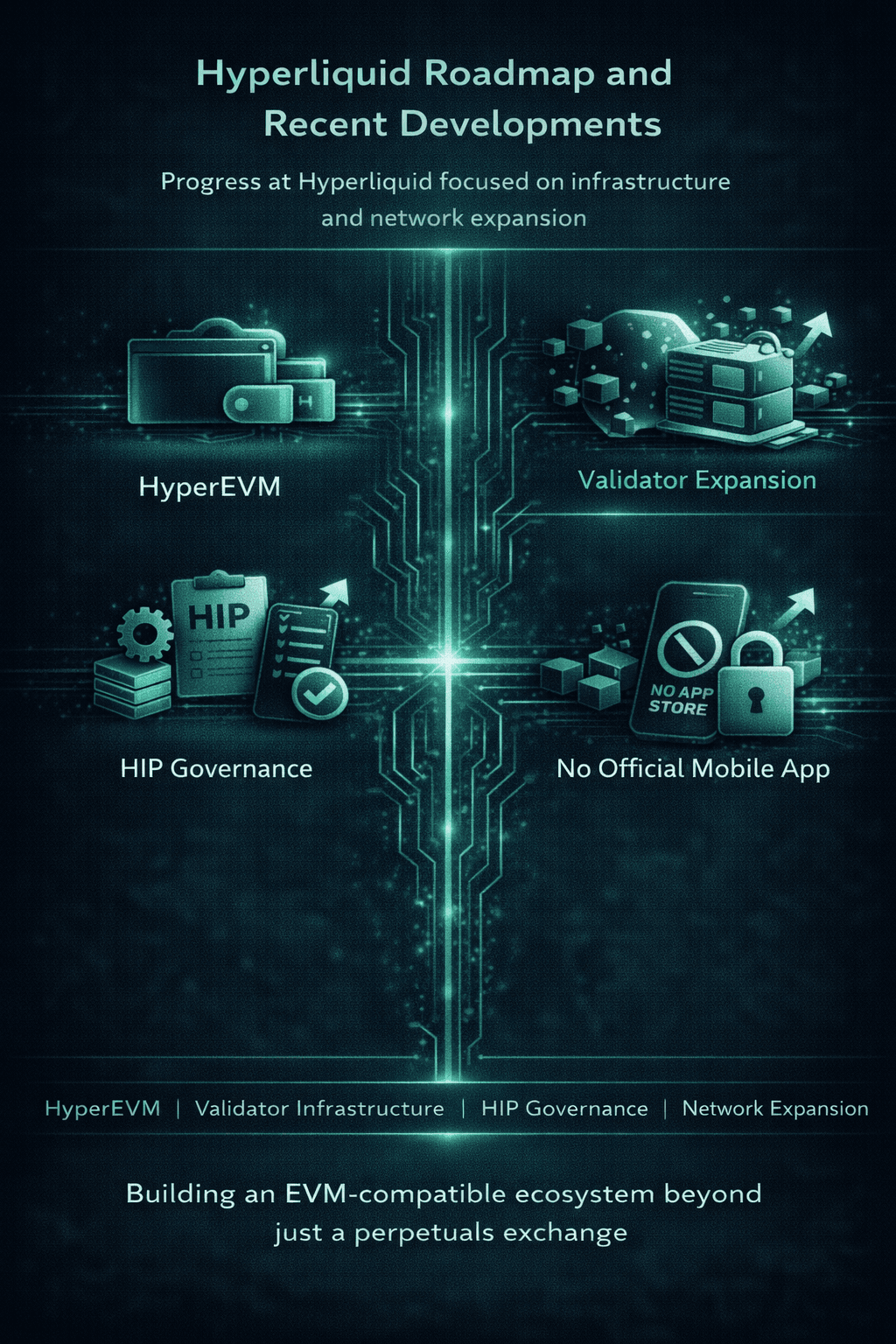 Hyperliquid’s recent development path looks fairly focused: build out HyperEVM, deepen validator and governance infrastructure, and expand the network without losing its trading-first identity.