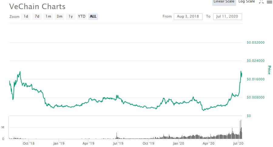 ICX has a fairly predictable price history. It entered the crypto markets in late 2017 at a price of roughly 40 cents USD per coin (4x its ICO price) and saw a spectacular rise to nearly 13$USD in early 2018.