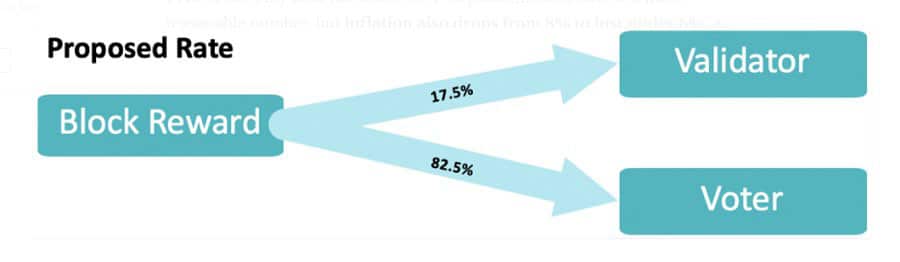 Block rewards were also changed so that the reward earned from each block generated would be split 17.5% to 82.5% Validator / Voter instead of the previous 36% to 65%. This was changed to incentivize voter participation.