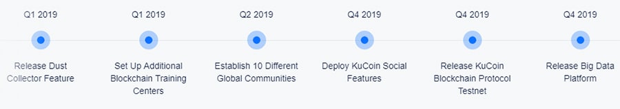 KuCoin Roadmap for 2019The most interesting of these will be the KuCoin blockchain protocol testnet as well as the deployment of KuCoin social features. If you wanted to stay up to date with these releases then you should keep an eye on the project's official blog.