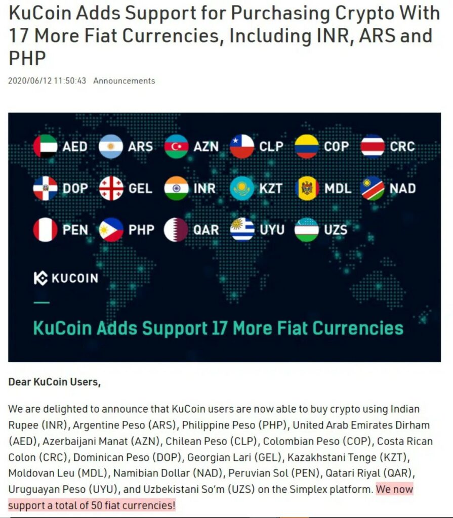 Fiat and Cryptocurrencies Available on KuCoin
