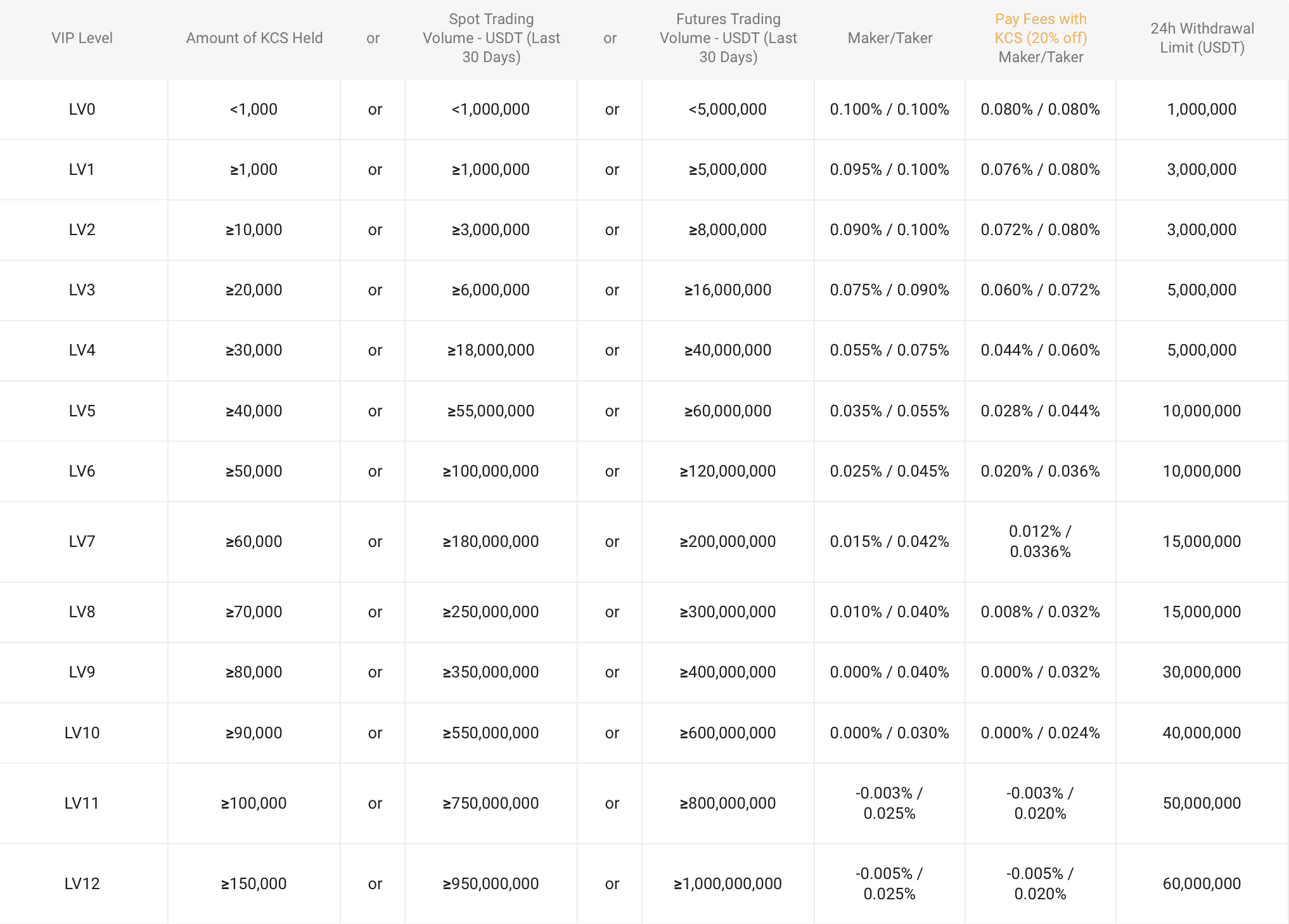 Here is a look at the tier levels and KuCoin fees: