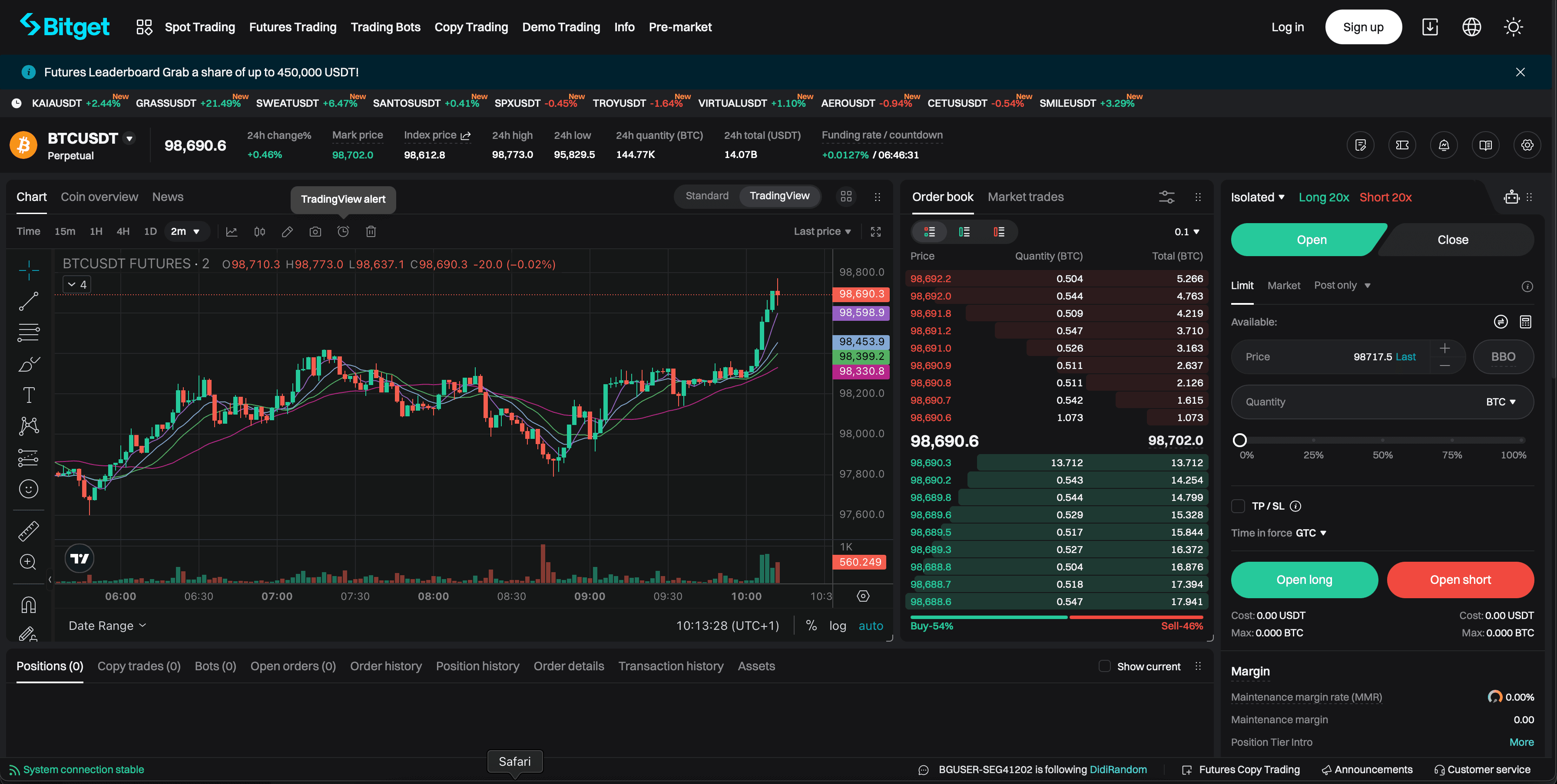 A Look at the Spot Trading InterfaceFor advanced traders, Bitget offers USDT-M Futures, USDT-M Demo, Coin-M Futures, Coin-M Futures Demo, USDC Futures, and Simulated USDC Futures.