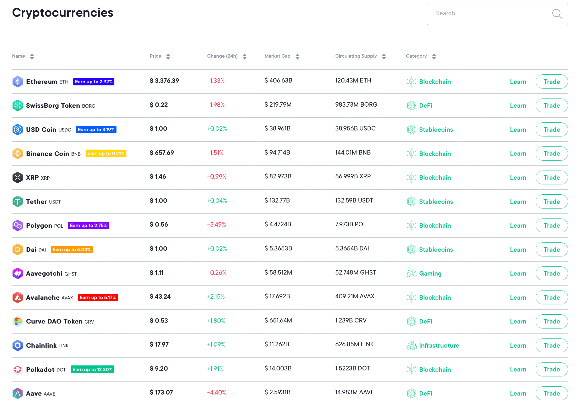 A Look at Some of the Assets Available on SwissBorgThere are also plenty of stablecoins available and 16 fiat currencies.