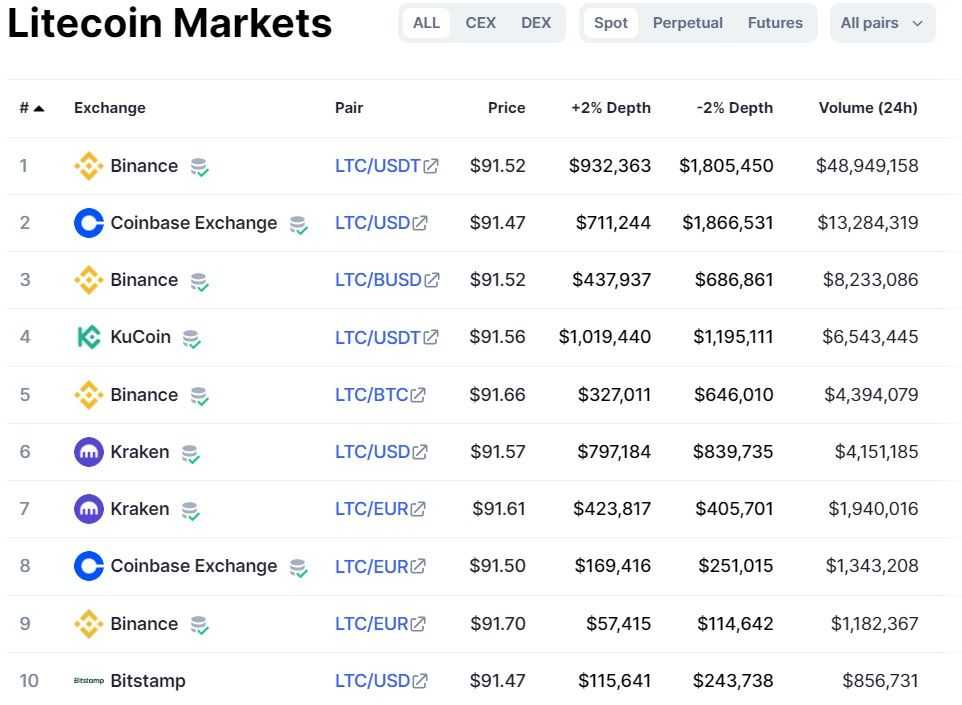 Litecoin is available on virtually every cryptocurrency exchange in existence. There are hundreds of trading pairs for Litecoin, and its 24-hour trading volume is in the tens of millions of dollars on many reputable platforms, including the leading crypto exchanges such as: -