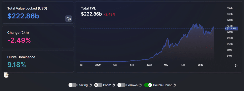 Growth of Defi TVL from 2020 to 2022 via Defi Llama
