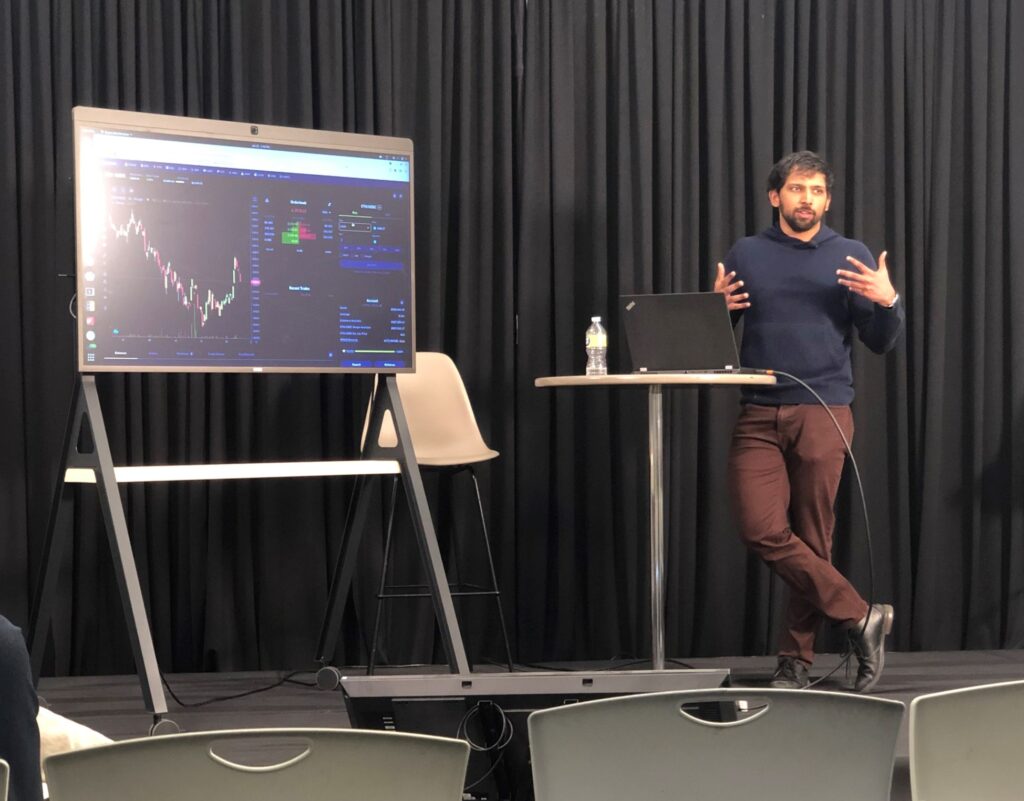 Dafydd presenting at the Pyth workshop in Chicago via Twitter