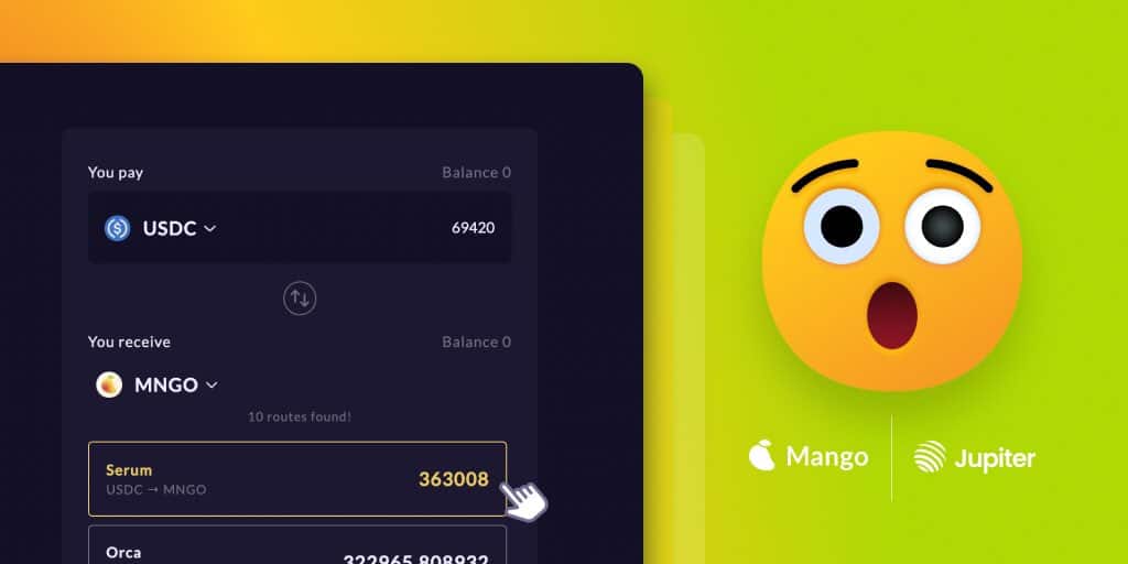 For AMM users, Mango offers a familiar feature called ‘Swaps’, which allows users to swap for any Solana asset. However, unlike native liquidity pools in AMMs, Mango’s swap feature is integrated with the Jupiter Aggregator- the key liquidity aggregator for Solana.