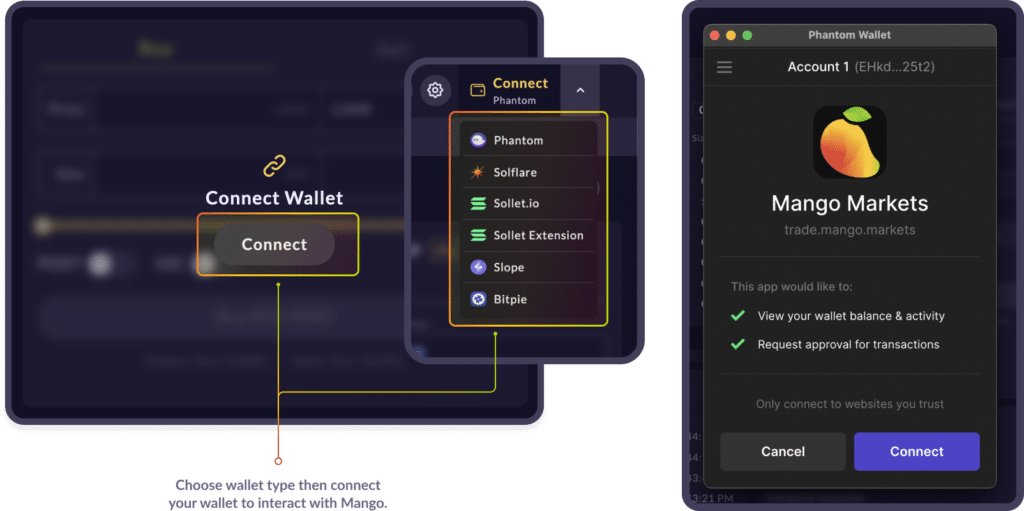 Connecting Solana Wallet via Mango Markets