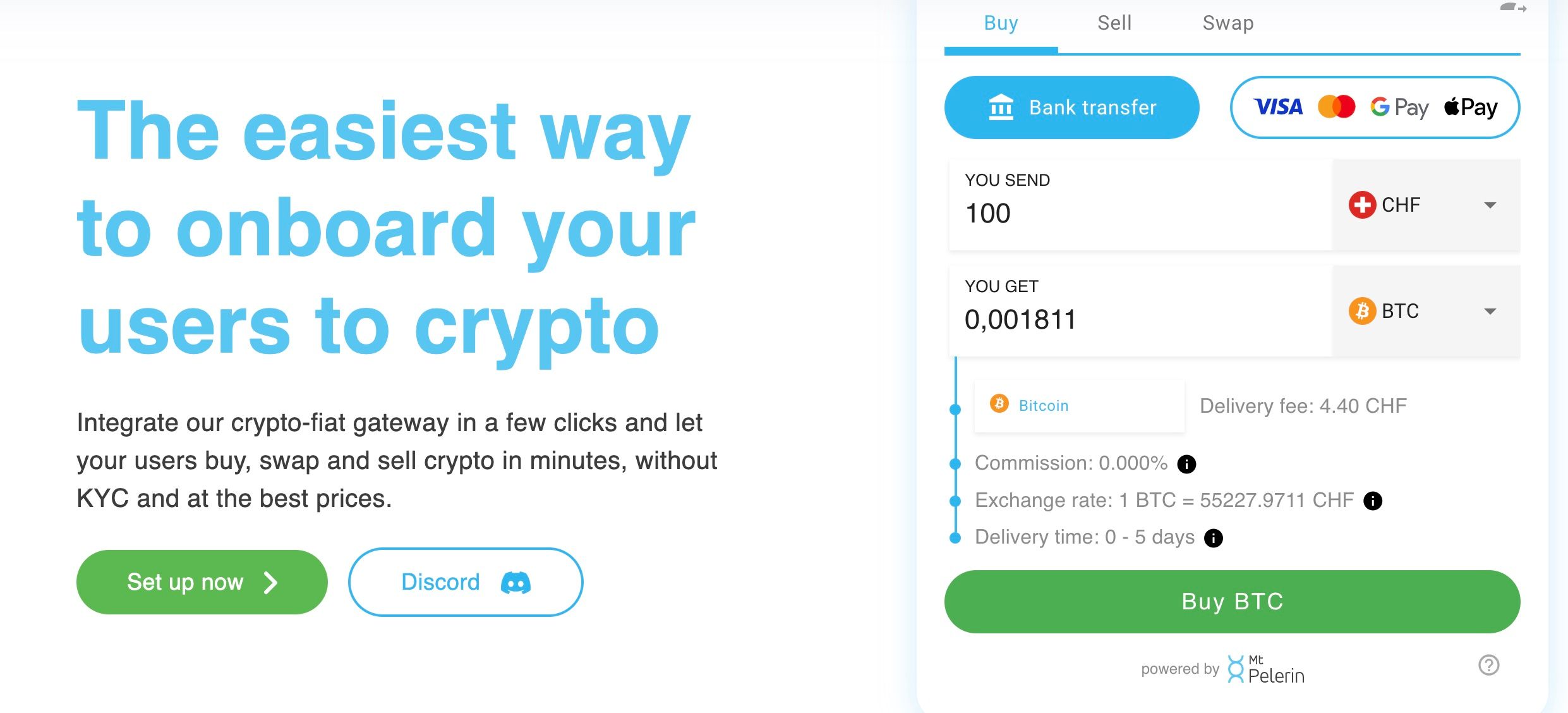- Swift and Hassle-Free: Mt Pelerin's intuitive interface and streamlined process make swapping cryptocurrencies a quick and effortless experience.