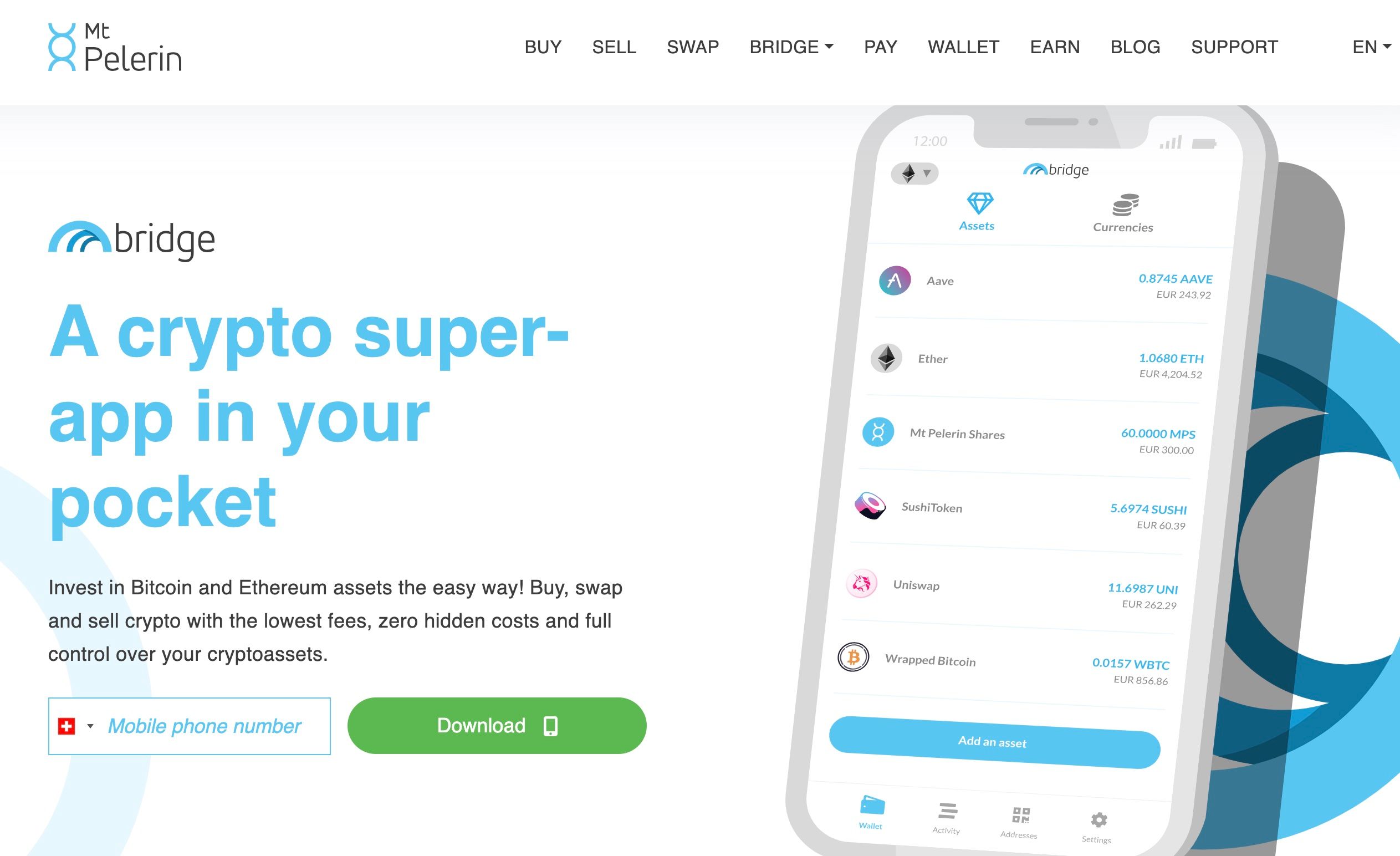 The Bridge Wallet is a secure mobile app that allows users to manage their cryptocurrencies and tokens. It is a non-custodial app, which means that users have full ownership and control of their funds. The Bridge Wallet supports the storage and transactions of various digital currencies, including MPS tokens, ERC20 tokens, and Bitcoin via Rootstock.