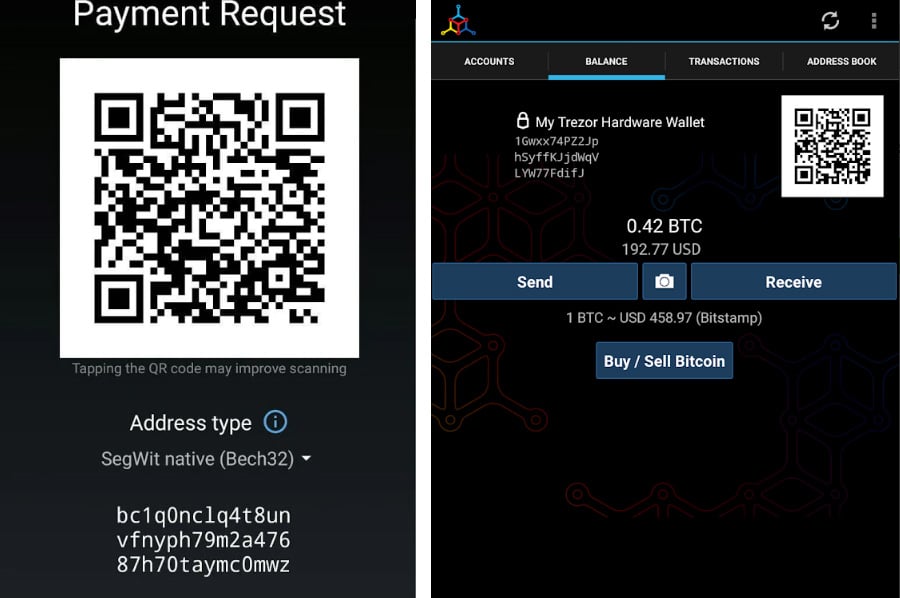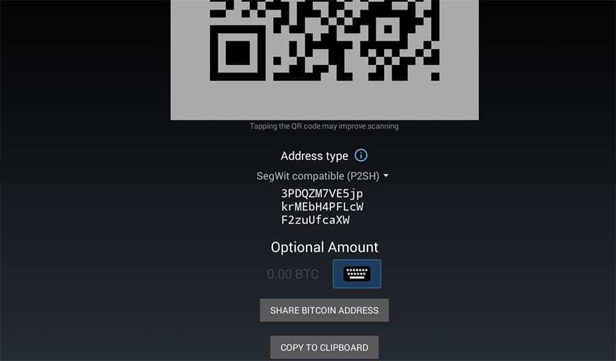 - You are able to “Scan QR Code”, choose from “My Addresses”, paste an address from the clipboard or manually enter an address. You also need to enter the amount of Bitcoin you’re planning on sending.