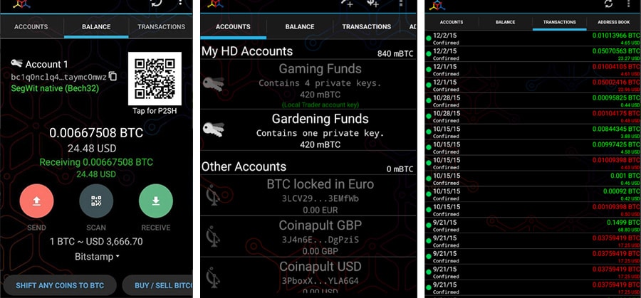 Other easy to understand and use features include an address book for frequently used Bitcoin addresses and a screen for transaction history.