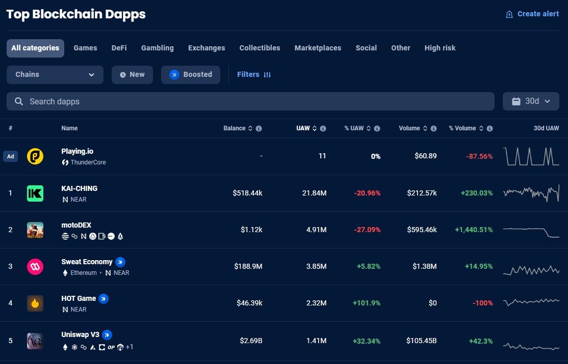 Nevertheless, the protocol has a budding DeFi ecosystem ranging from DEXes to lending to liquid staking. Even with a fewer number of DApps than many of the behemoths, NEAR punches above its weight. According to DappRadar's ranking of top DApps over the last 30 days, four of the top five DApps are available on NEAR with two exclusive to the network including the top-ranked DApp.