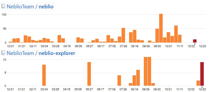 GitHub Commits of two popular repositories. Image via GitHubIf we were to compare this to other projects you, Neblio comes in at 72 in terms of the total commits over the past 12 months. This places them just between Ether Zero and Bitcoin Cash.