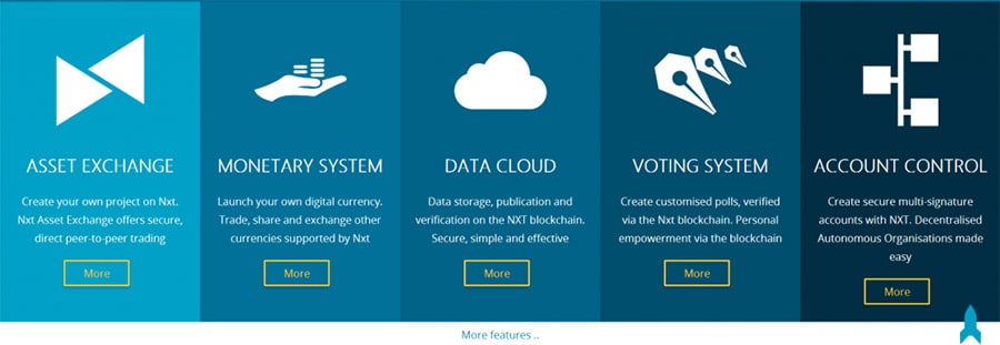 Nxt was developed to be multi-functional, and has had many features added over the years. Here are some of the features that have been implemented, or are planned for future development: