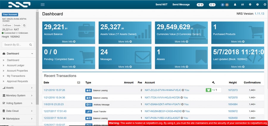 The Nxt client was also unique when launched as it worked as a brain wallet. This meant your keys were not kept in a wallet file, and that your account could be accessed from any instance of the Nxt client via your secret passphrase.