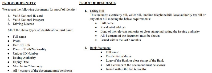 KYC Requirements of OInvest In addition to that to fully confirm the account and begin trading you will have to submit clear images of several documents that are used as proof of identity and address. These could be documents such as driver’s license and passport for identity verification and a utility bill or similar for address verification.