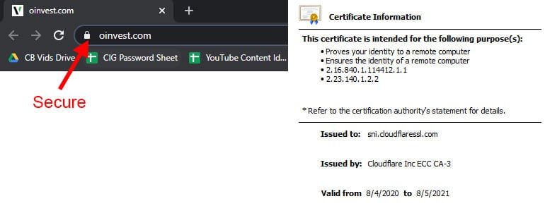 OInvest SSL Certificate and secure padlock Any potential system downtime is protected against by fully redundant backup systems to ensure that all trades will go through, and all accounts will remain online at all times. Servers and systems are monitored 24/7 for all abnormalities, and backups are continually being made to secure and save client’s data.