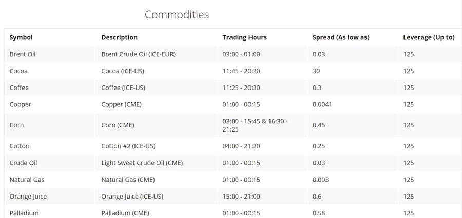 Those interested in trading commodities will find the spread reduction is true here as well. For example, gold carries spreads of 0.59 pips, 0.48 pips, and 0.37 pips on silver, gold, and platinum accounts respectively. Crude oil spreads are 0.07 pips, 0.05 pips, and 0.03 pips. Coffee also has a low spread of 0.3 pips, and the spread on sugar is 0.23 pips.