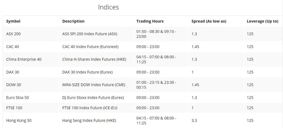 Spreads on stocks begin as low as 0.21 pips, while index spreads begin as low as 1 pip for the FTSE and DAX.