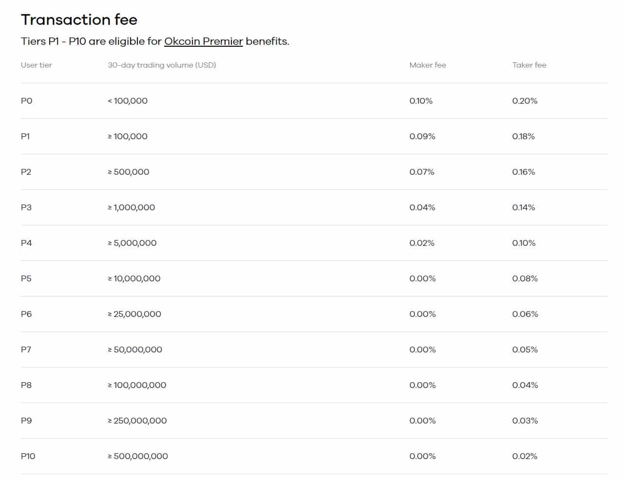 The only fees incurred are for spot trading in the form of maker and taker fees and some withdrawal and deposit methods which will be discussed later in the article. Similar to OKX and Coinbase, OKcoin’s fees are based on a tiered structure, with maker fees starting at a beautifully low 0.1% and taker fee at just 0.2%. This makes OKcoin competitive with price leaders such as KuCoin and Binance while being significantly lower than Coinbase. A capture of the tiered fee structure can be seen below: