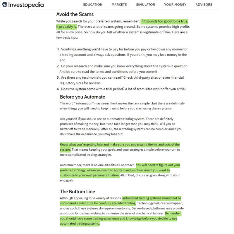 Though I feel like I would not be a very good crypto educator if I didn’t highlight the dark but important truth about crypto bots and auto trading.