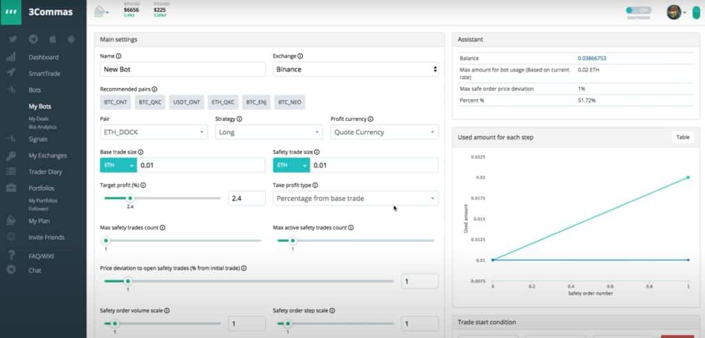 Bots can be coded by programmers from scratch, or platforms like 3Commas or TradeSanta provide “plug and play” interfaces that allow traders to program their own bots using a simple interface with no coding required: