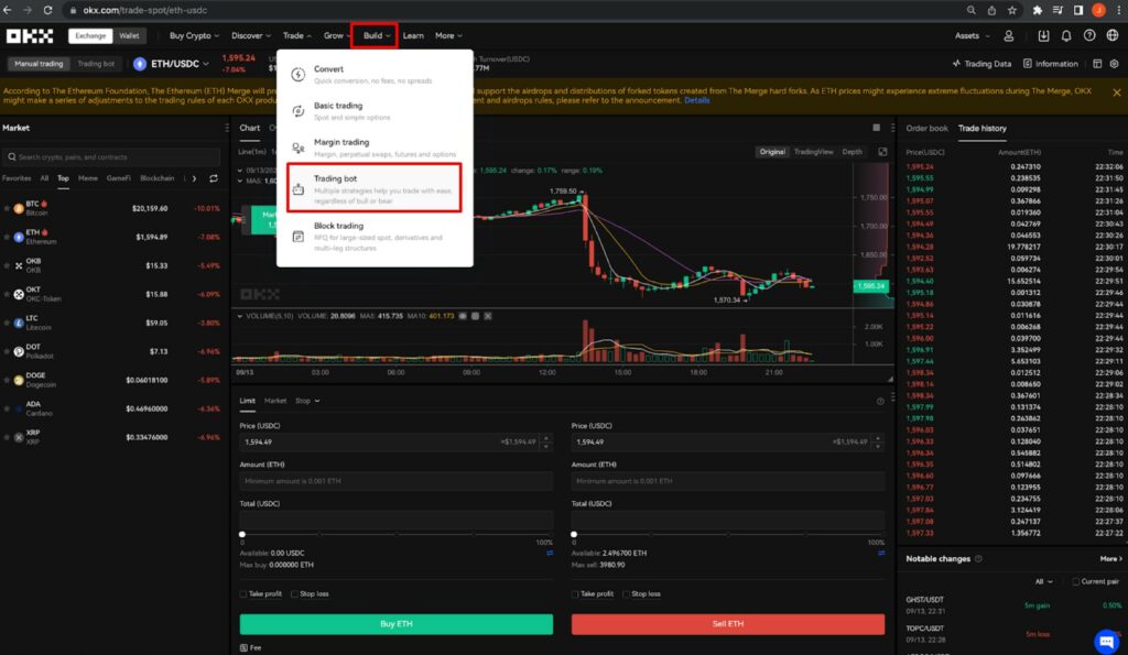 OKX has become a go-to platform for traders interested in bot trading, providing a good selection of different trading bot strategies that traders can choose from or create their own.