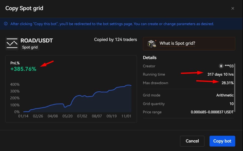 A Look at a Bot’s Performance Screen From the OKX Marketplace.For another perspective, here’s Guy’s take on crypto trading bots if you’re interested: