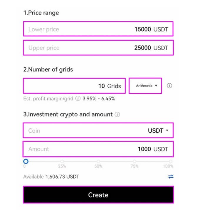 Image via OKXHere is a look at what the screen looks like for traders who want to set their own grid parameters: