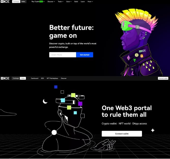 I think most would agree that OKX has a more aesthetically pleasing interface and is more beautifully designed, with the eye candy providing a satisfying user experience. I mean, just look at the homepage: